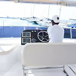 A stylish catamaran offers a unique blend of bar seating and stunning ocean scenery
